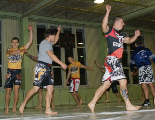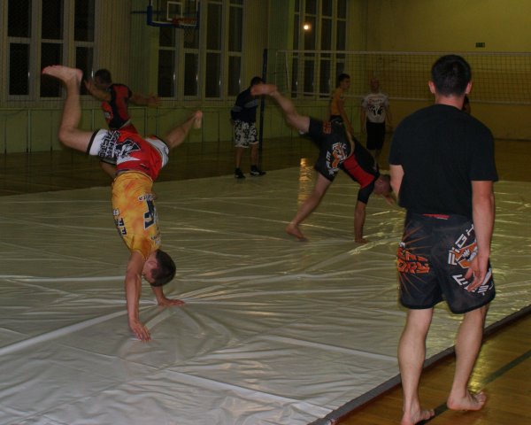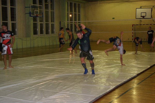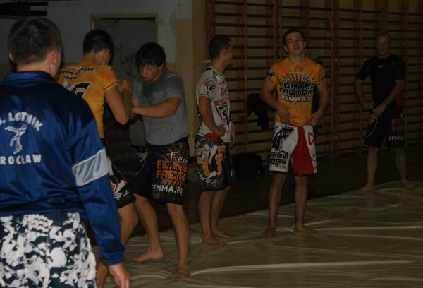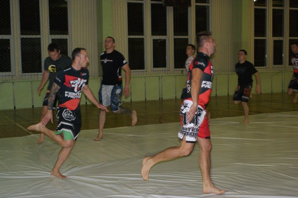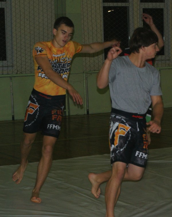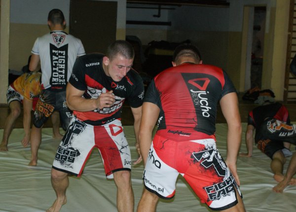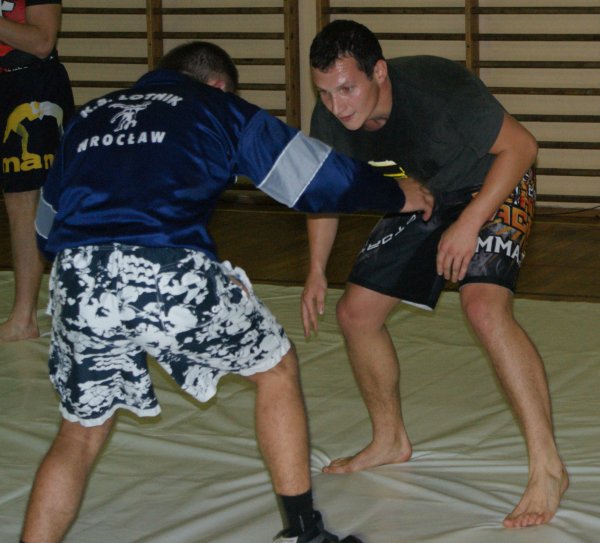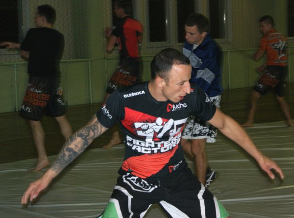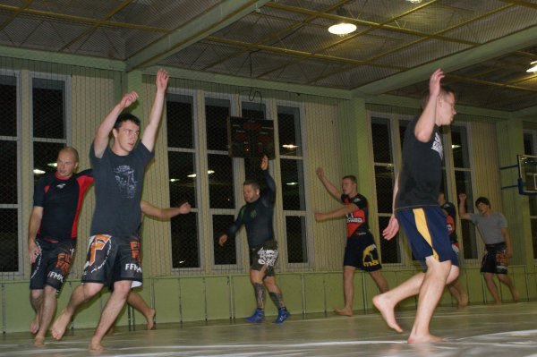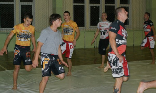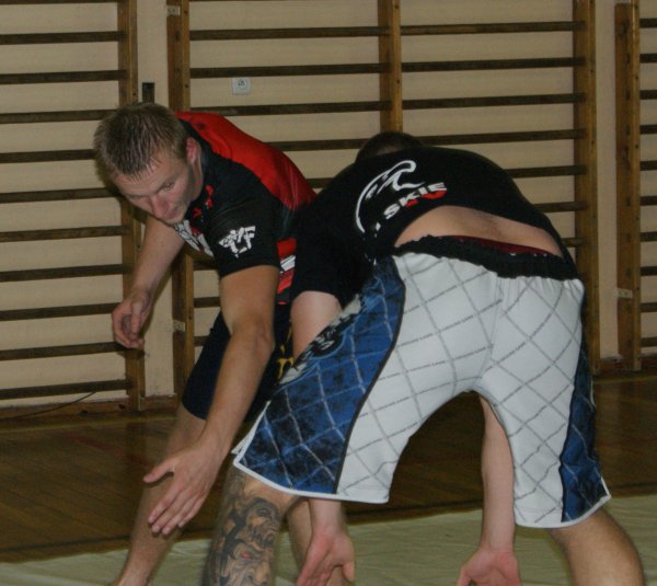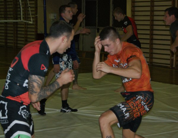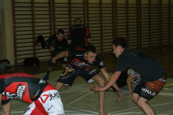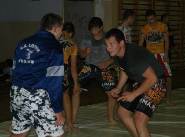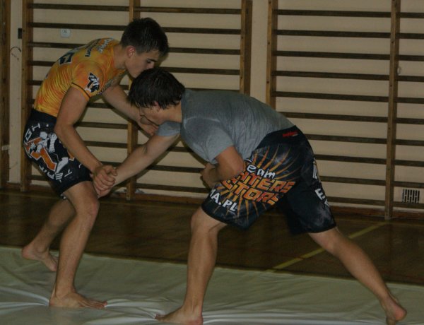 Trening zapasów w grupie trenującej MMA.