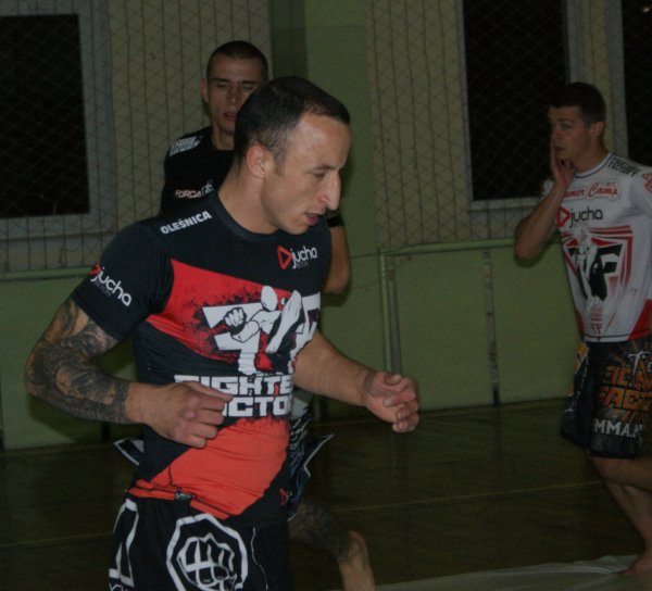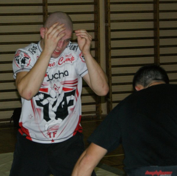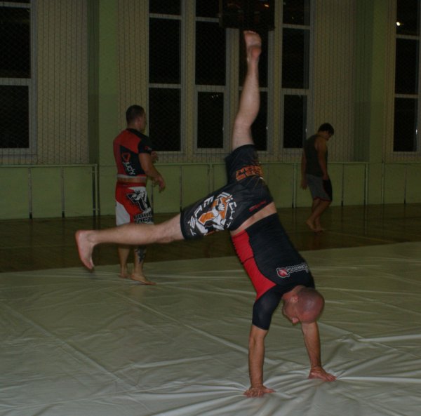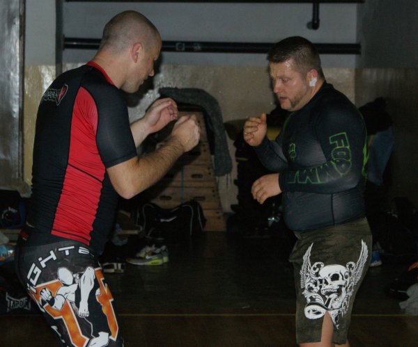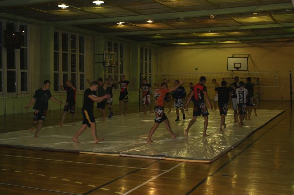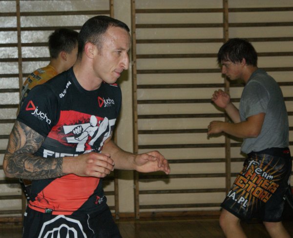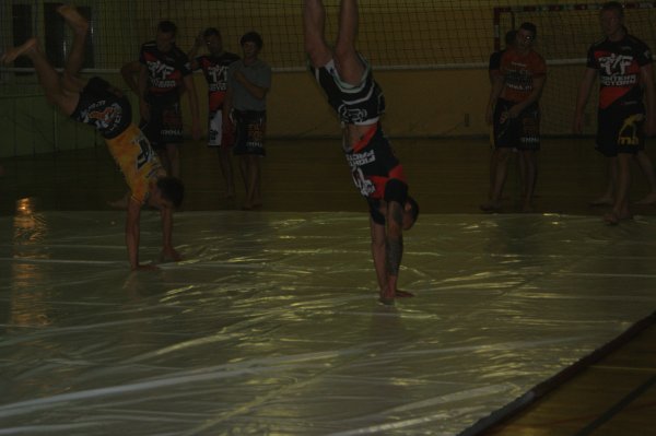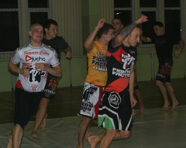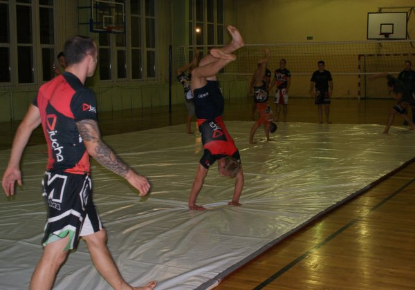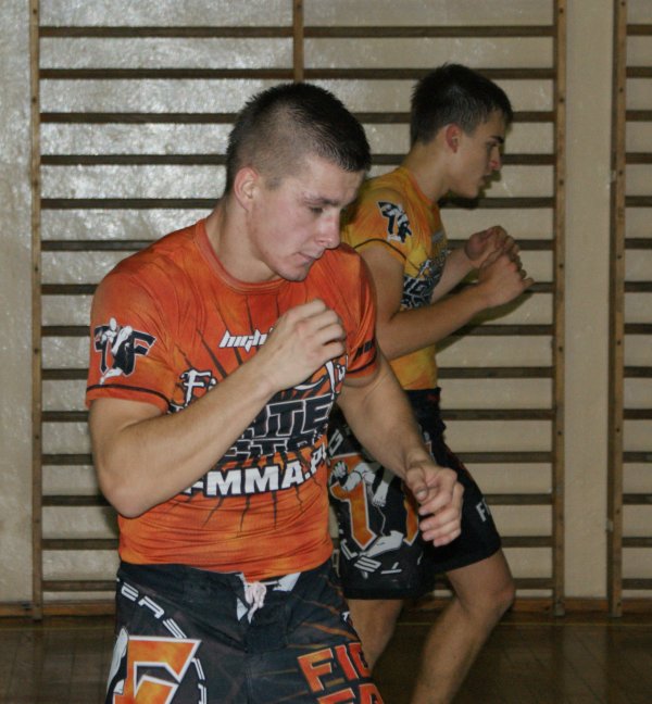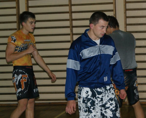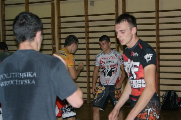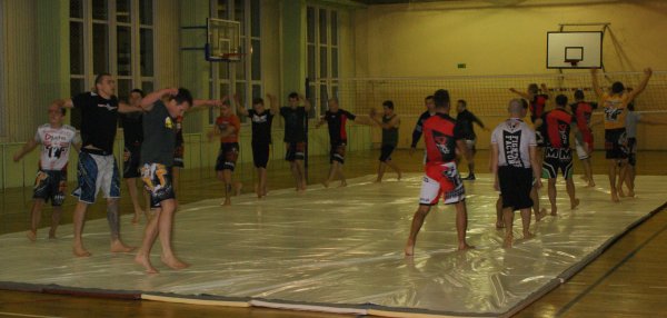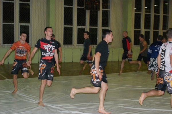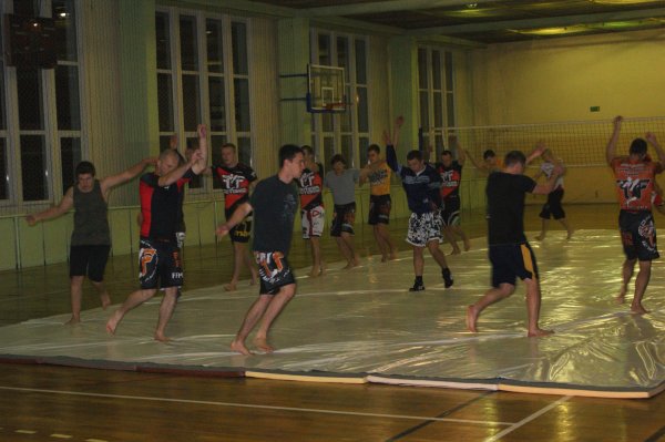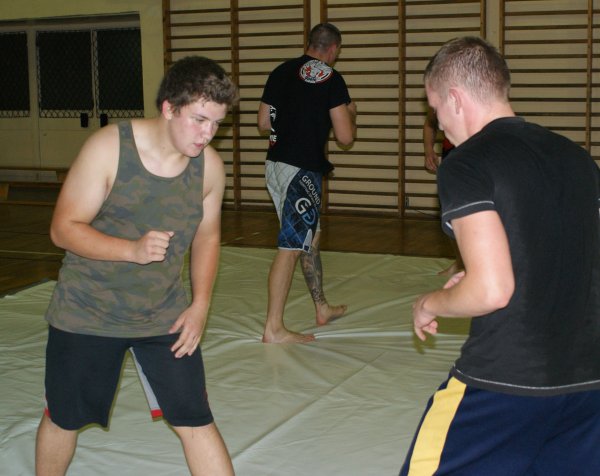 Trening zapasów w grupie trenującej MMA.